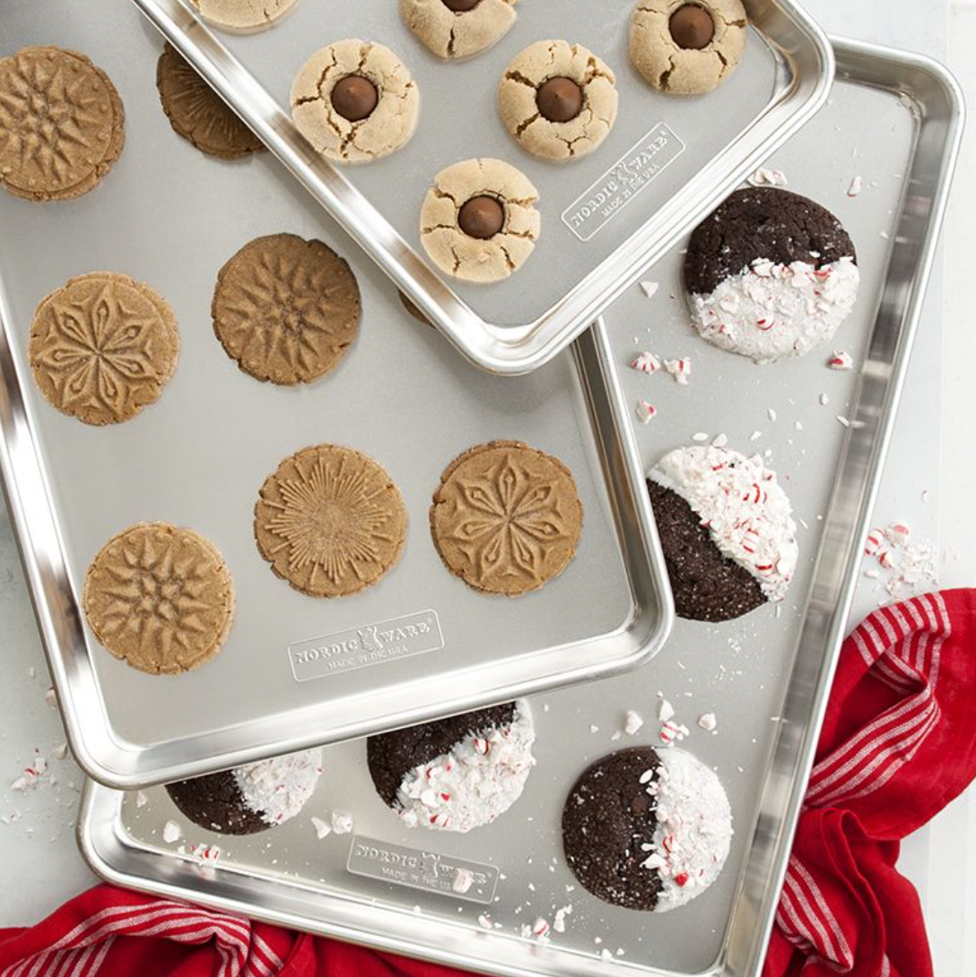 Our top-rated Naturals®Bakeware collection is made of pure aluminum for superior heat conductivity and produces consistent evenly browned baked goods every time. These premium pans have a lifetime durability and will never rust. Encapsulated galvanized steel rims prevent warping. Creativity meets natural aluminum sustainability.